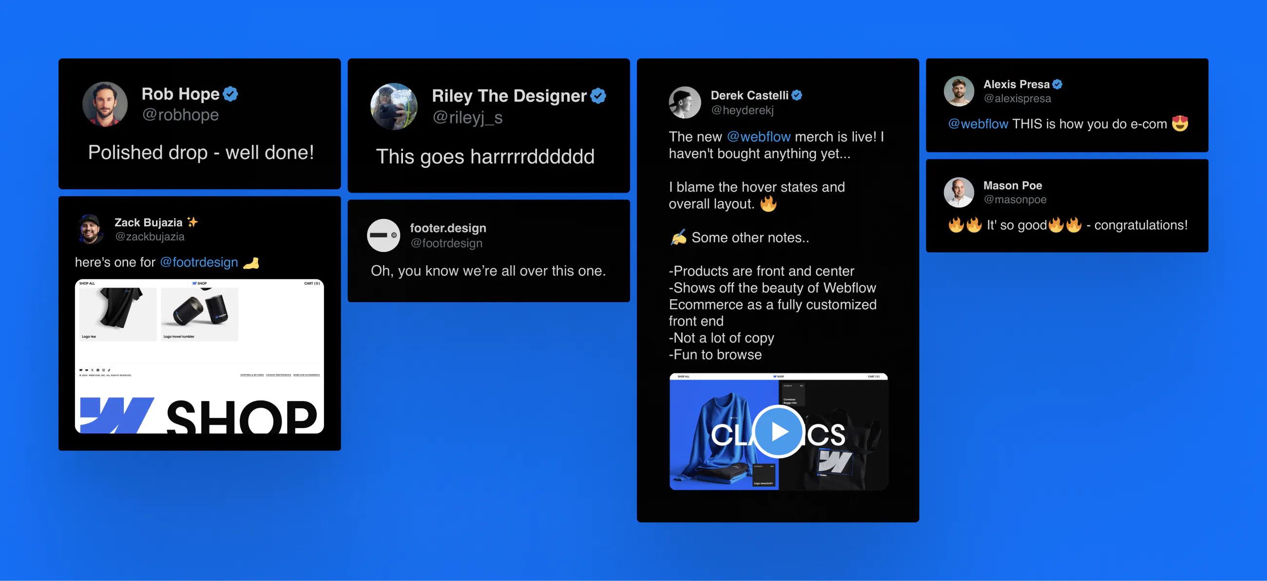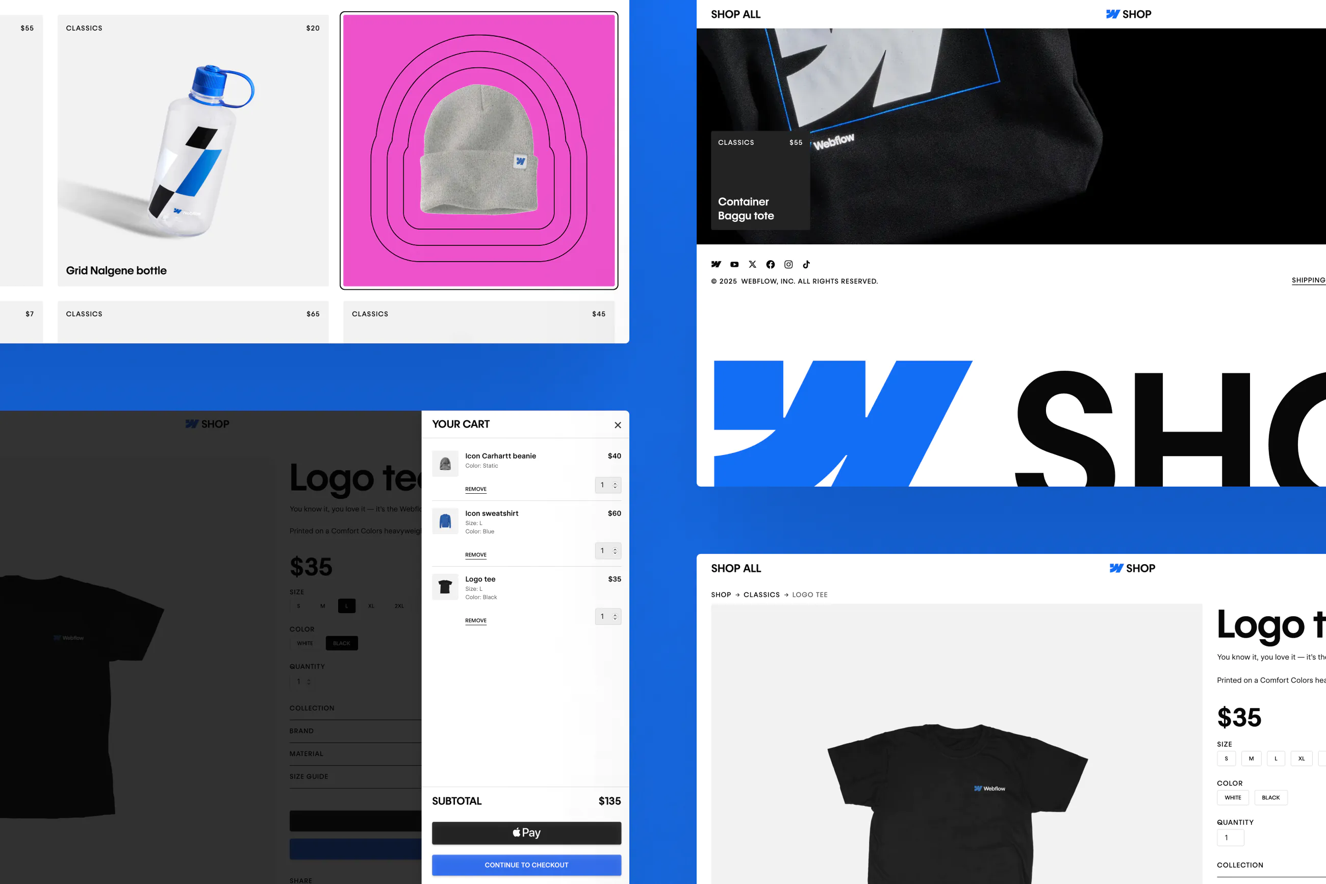 As the merch store for a design-first brand, the site needed to go beyond standard ecommerce. The experience had to feel intentional, not transactional — matching the quality of Webflow’s visual system while staying approachable and fast. It also had to support global users, handle product variation gracefully, and keep the path to checkout seamless for first-time and returning visitors alike.